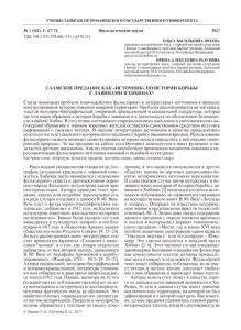 УЧЕНЫЕ ЗАПИСКИ ПЕТРОЗАВОДСКОГО ГОСУДАРСТВЕННОГО УНИВЕРСИТЕТА № 1 (162). С. 67-73 УДК 398.1:551.578.48(=511.1)(470.21) Филологические науки 2017 ОЛЬГА ВАСИЛЬЕВНА ЗМЕЕВА кандидат исторических наук, старший научный сотрудник Центра гуманитарных проблем Баренц региона, Кольский научный центр РАН (Апатиты, Российская Федерация) zmeyeva@rambler.ru ИРИНА АЛЕКСЕЕВНА РАЗУМОВА доктор исторических наук, главный научный сотрудник Центра гуманитарных проблем Баренц региона, Кольский научный центр РАН (Апатиты, Российская Федерация) irinarazumova@yandex. ru СААМСКОЕ ПРЕДАНИЕ КАК «ИСТОЧНИК» ПО ИСТОРИИ БОРЬБЫ С ЛАВИНАМИ В ХИБИНАХ* Статья посвящена проблеме взаимодействия фольклорных и литературных источников в процессе конструирования истории освоения северной территории. Проблема рассматривается на материале текстов мемуарно-биографической, очерковой, краеведческой и специальной литературы, которая так или иначе обращена к истории борьбы с лавинами и к деятельности по обеспечению безопасно сти в районе Хибин. В отсутствие постоянного старожильческого населения и систематических на блюдений обращение к знаниям коренных жителей оставалось единственным средством получить информацию о снежных потоках. В массиве литературных источников в качестве прецедентного используется текст саамского исторического предания о борьбе с внешними врагами. Использование фольклорного сюжета помогает сконструировать историю места и определить в ней миссию «поко рителей природы». То же предание на сайтах сети Интернет используется в иных функциях и на деляется другими значениями. Анализ текстов способствует прояснению механизма освоения и пе- ресемантизации фольклорного источника книжной и медийной культурами. Ключевые слова: литература, фольклор, предание, источник, саамы, лавины, освоение Севера Рассуждения специалистов-гляциологов, гео графов, историков-краеведов о лавинной опас ности в Хибинах часто начинаются с изложения фольклорного сюжета о противостоянии корен ного народа Кольского полуострова саами вра- гам-пришельцам. Авторы приводят текст пре дания, кратко или подробно пересказывая его, а в ряде случаев отсылают к записям В. Ю. Визе. Речь идет о фольклорно-этнографических ма териалах, собранных в 1912 году на Кольском полуострове известным впоследствии полярным исследователем. Записи были сделаны «со слов имандрских и пулозерских лопарей» и опубли кованы в 1917 году в «Известиях Архангельского общества изучения Русского Севера» [8: 15-24]. Во всех рассмотренных нами литературных тек стах приводятся варианты «Сказания о наше ствии “немцев” и о том, как лопари хитростью избавились от них (второй нагон)», записанного В. Ю. Визе от Аграфены Архиповой и атрибу тированного: «Имандра, 3/VI - 1912» [8: 20-21]. Авторы специальной, мемуарно-биографической и историко-краеведческой, литературы упомина ют имя собирателя и даже время записи исходно го текста (1912 год). Однако, несмотря на то что большей частью публикации претендуют на до кументальность и историческую достоверность, источник фактически нигде не обозначен. Это свойство отличает «краеведческую» литературу от научно-исторической. Писатели и мемуаристы вольны обращаться с текстами по своему усмо трению, а что касается специалистов в других областях знания, их научным дисциплинам по нятие исторического источника нерелевантно