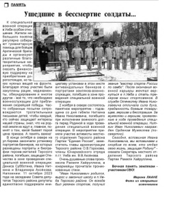 Лаане, М. Ушедшие в бессмертие солдаты... // Терский берег. - 2023. - 10 нояб. (№ 45). - С. 3.