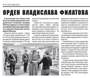 Орден Владислава Филатова // Полярный вестник. - 2023. - 21 июля (№ 14). - С. 7.