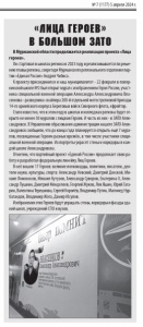 "Лица Героев" в большом ЗАТО // Полярный вестник. - 2024. - 5 апр. (№ 7). - С. 6.