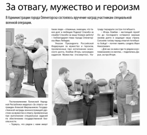 За отвагу, мужество и героизм // Заполярная руда. - 2023. - 18 нояб. (№ 45). - С. 2.