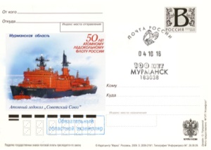 Атомный ледокол «Советский Союз», Мурманская область : 50 лет атомному ледокольному флоту России : [почтовая открытка]. - [Москва] : Марка, 2009. - Цв. офсет ; 11х15 см.