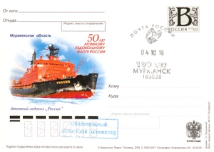 Атомный ледокол «Россия», Мурманская область : 50 лет атомному ледокольному флоту России : [почтовая открытка]. - [Москва] : Марка, 2009. - Цв. офсет ; 11х15 см.