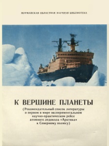 К вершине планеты : (рекомендательный список литературы о первом в мире экспериментальном научно-практическом рейсе атомного ледокола «Арктика» к Северному полюсу) / Мурм. обл. науч. б-ка ; [сост. О. П. Коноплева]. - Мурманск : [б. и.], 1978. - 9, [1] с.