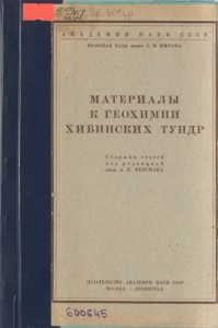 Материалы к геохимии Хибинских тундр : [сборник статей]. – Москва ; Ленинград : Изд-во АН СССР, 1935. - 89,[1] с., [8] л. ил.