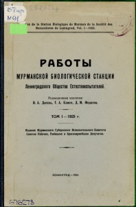 Мурманская биологическая станция. Работы Мурманской биологической станции Ленинградского общества естествоиспытателей / Мурм. Губисполком. – Ленинград : [б. и.], 1925. - 193 с., [1] л. карт.