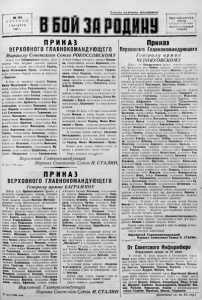 □= № 107 ]] т О I’ и и к 1 а в г у с т а 1944 г. Смерть немецким оккупантам! с ь = 0 п = о онзаим и Краснофлотская газета ВЫХОДИТ 4I.PF-3 ДЕНЬ П р о ч т и и п е р е д а й то в а р ищ у □= =п ПРИКАЗ В Е Р Х О В Н О Г О Г Л А В Н О К О М А Н Д У ЮЩ Е Г О Маршалу Советского Союза РОКОССОВСКОМУ Войска 1 -го Белорусского фронта, после упорных боев, штурмом овладели городами л крупными узлами коммуникаций Седлец, Минск Мазовецкий, Луков мощными опор ными пунктами обороны немцев на подступах к Варшаве. В боях за овладение городами Седлец, Минск Мазовецкий и Луков отличились тан кисты генерал-майора Радзиевского, генерал- майора танковых войск КЗщука, генерал-лей тенанта танковых войск Попова, генерал-майо ра танковых войск Веденеева, генерал-майо ра танковых войск Дубового, полковника Кон стантинова, полковника Павлушко, полков ника Жарова, полковника Шевченко, полков ника Степанова, полковника Туренкова, пол ковника Пискарева, подполковника Пивнева, подполковника Макарова; кавалеристы гене рал-лейтенанта Крюкова, генерал-майора Яго дина, генерал-майора Миллерова, генерал- майора Курсакова; войска генерал-лейтенанта Гусева, генерал-майора Анашкина, генерал- майора Чернова, полковника Каладзе; артил леристы генерал-майора артиллерии Лярского, полковника Копелева, полковника Никитина, полковника Малявского, подполковника Му- хачева, подполковника Щербенюка, подпол ковника Шадрухина. майора Сушмарченко; летчики генерал-лейтенанта авиации Полыни- на, генерал-майора авиации Крупского, гене рал-майора авиации Токарева, генерал-майора авиации Сиднева, подполковника Гавриль- ченко, майора Уханева; саперы полковника Комарова, полковника Левина, капитана До- гаева; связисты полковника Игнатьева, пол ковника Беленко, майора Лесникоза, майора Цибулько. В ознаменование одержанной победы сое динения и части, наиболее отличившиеся в бо ях за овладение городами Седлец, Минск Ма зовецкий и Лукав, представить к присвоению наименования „Седлецких * и к награждению орденами. Сегодня, 31 июля, в 22 часа столица нашей Родины Москва от имени Родины салютует доблестным войскам 1-го Белорусского фронта, овладевшим городами Седлец, Минск Мазо вецкий и Луков, - двадцатью артиллерийски ми залпами из двухсот двадцати четырех орудий. За отличные боевые действия объявляю благодарность руководимым Вамп войскам, участвовавшим в боях за освобождение горо дов Седлец, Минск Мазовецкий и Луков. Вечная слава героям, павшим в боях за свободу п независимость нашей Родины! Смерть немецким захватчикам! Верховный Главнокомандующий зі нюлч 1944 года. Маршал Советского Союза И. СТАЛИН. ПРИКАЗ В Е Р Х О В Н О Г О Г Л А В Н О К О М А Н Д У Ю Щ Е Г О Генералу армии БАГРАМЯНУ Войска 1-го Прибалтийского фронта, в результате стремительного маневра танковых соединений и пехоты, сегодня, 31 июля, с боями овладели городом Иелгава (Митава)— основным узлом коммуникаций, связывающим Прибалтику с Восточной Пруссией. В боях за овладение городом Иелгава от личились танкисты генерал-лейтенанта танко вых войск Обухова, генерал-майора танковых войск Белого, полковника Кремера, подпол ковника Стародубцева, генерал-майора тан ковых войск Родионова, генерал-майора тан ковых войск Асланова, генерал-майора тан ковых войск Скорнякова, полковника Мак симова, подполковника Николаева, подпол ковника Яблокова, подполковника Шуко- кидзе